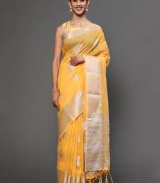 Leeza store women's mango yellow tissue silk silver zari floral motifs saree with blouse piece