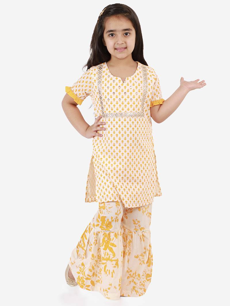 | Product Name | Yellow Printed Cotton Girls Top Bottom | |