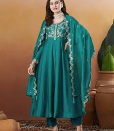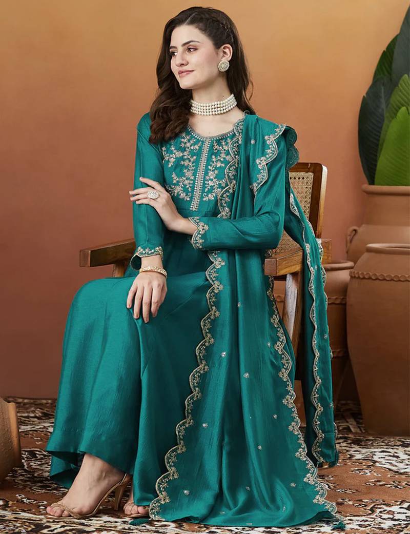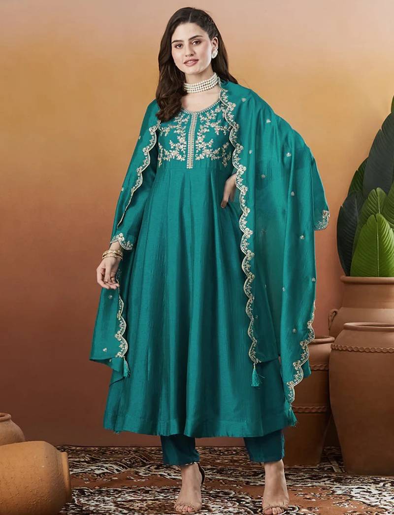 | Product Description | Top Fabric: Vichitra Silk, Top Color: Aqua Blue, Bottom Fabric: Vichitra Silk, Bottom Color: Aqua Blue, Dupatta Fabric: Vichitra, Dupatta Color: Aqua Blue, Work: Thread Embroidered With Sequins Work, Remark: Kurta Pant Set (Size S,M,L,Xl,Xxl), Note: There Might Be Slight Color Variation Due To Lightings & Flash While Photo Shoot. |
