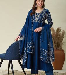 | Product Description | Top Fabric: Vichitra Silk, Top Color: Blue, Bottom Fabric: Chanderi, Bottom Color: Blue, Dupatta Fabric: Vichitra, Dupatta Color: Blue, Work: Heavy Thread Embroidery Work, Remark: Kurta Pant Set (Size S,M,L,Xl,Xxl), Note: There Might Be Slight Color Variation Due To Lightings & Flash While Photo Shoot. |