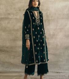 | Product Name | Bottle Green Velvet Heavy Thread Embroidery Work Kurta Pant Set | |