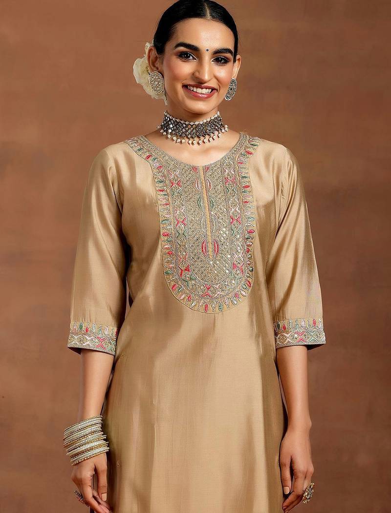 | Product Name | Cream Chanderi Heavy Thread Embroidered Work Kurta Pant Set | |