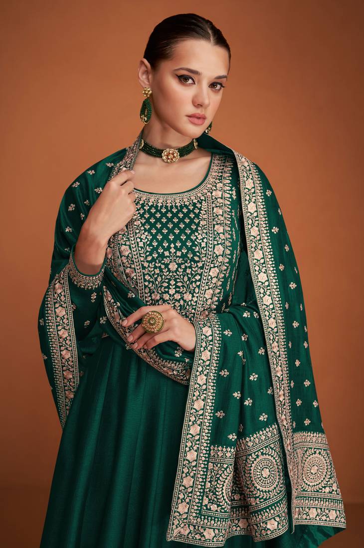 | Product Description | Top Fabric: Premium Silk, Top Color: Dark Green, Dupatta Fabric: Premium Silk, Dupatta Color: Dark Green, Work: Heavy Thread Embroidery With Sequins Work, Remark: Top & Dupataa (Free Size Stitch ) |
