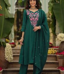 Product Name Green Viscose Rayon Heavy Thread Embroidery Work Kurta Pant Set