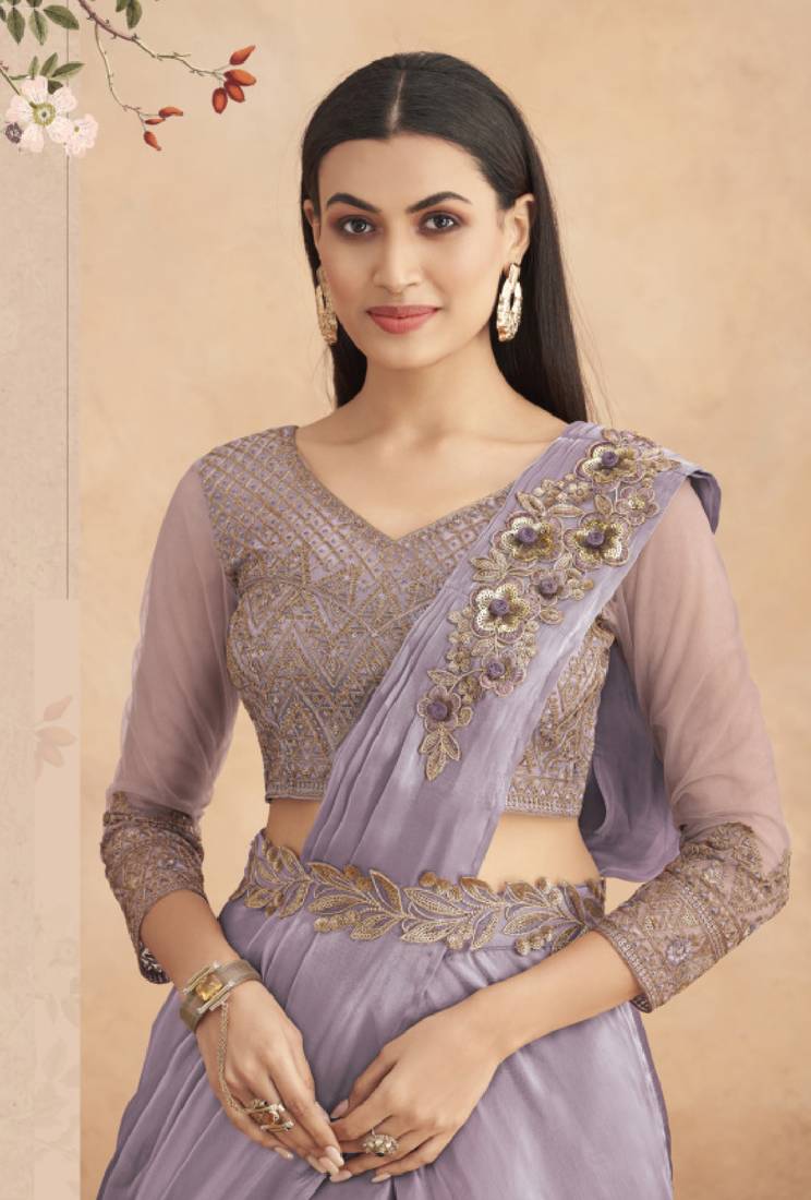 Lavender embroidered fancy fabric saree with blouse