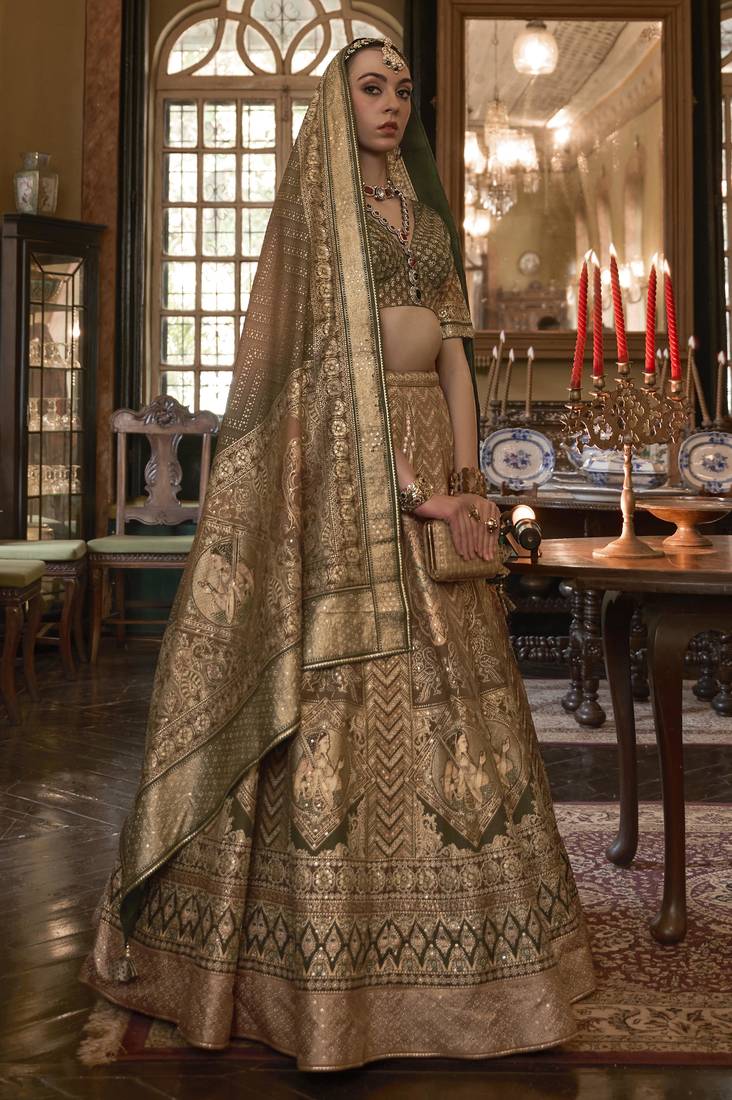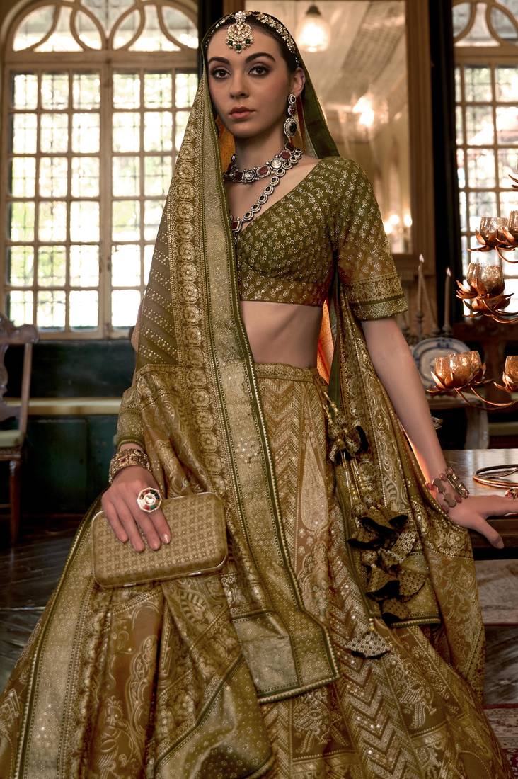 Product Description | Lehenga Fabric: Rajwadi Silk, Lehenga Color Multicolor, Choli Fabric: Rajwadi Silk, Choli Color: Mehendi, Dupatta Fabric: Rajwadi Silk, Dupatta Color: Multicolor, Work: Jacquard Woven Print With Heavy Stone Work, Remark: Lehenga Choli(Readymade Blouse Of 36 Size With 4 Inch Margin) |