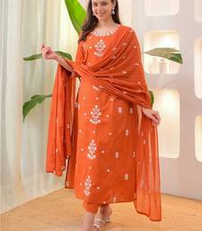 | Product Name | Orange Rayon Slub Heavy Thread Embroidery Work Kurta Pant Set | |
