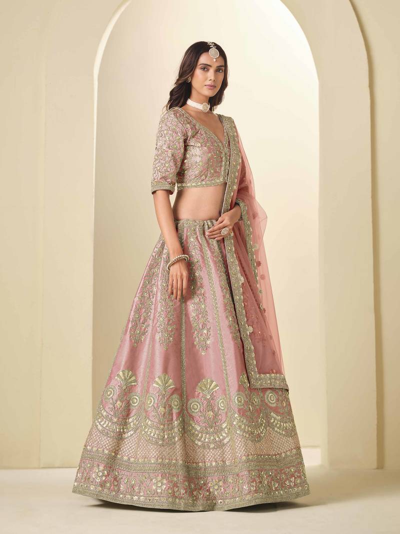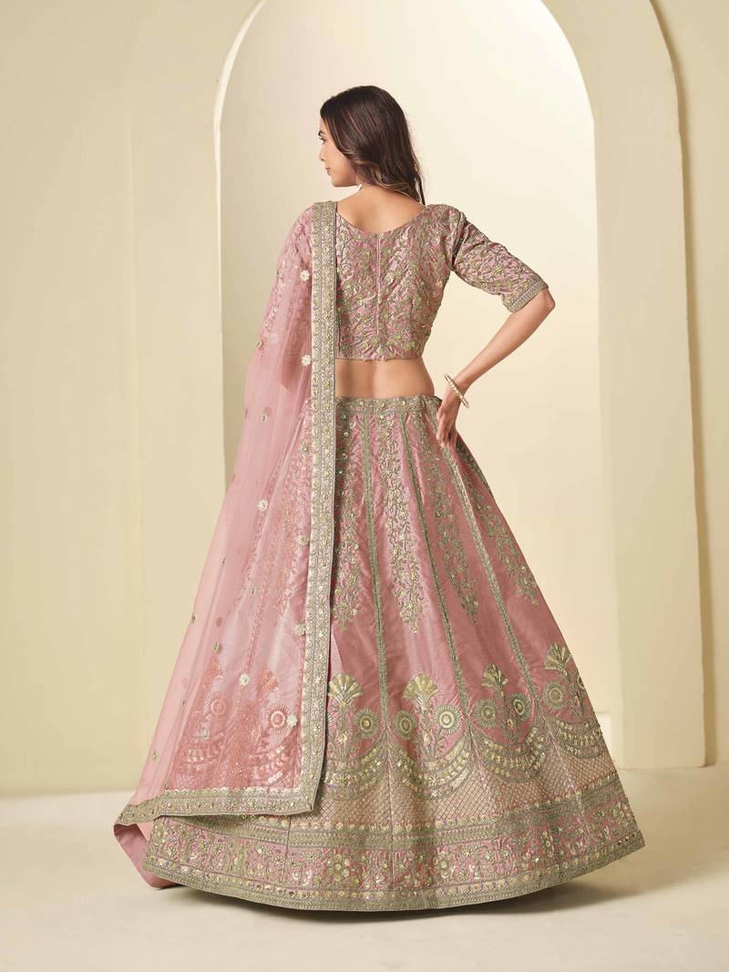 Pink Art Silk Heavy Thread Embroidery Sequins Work Lehenga Choli