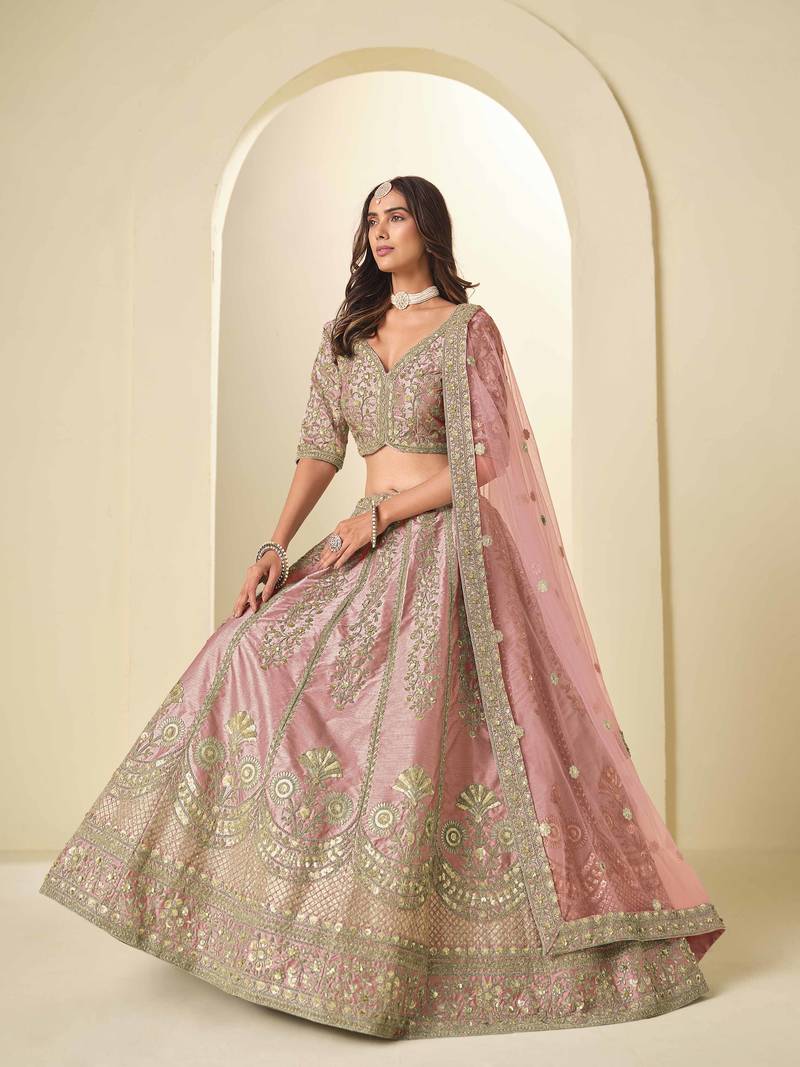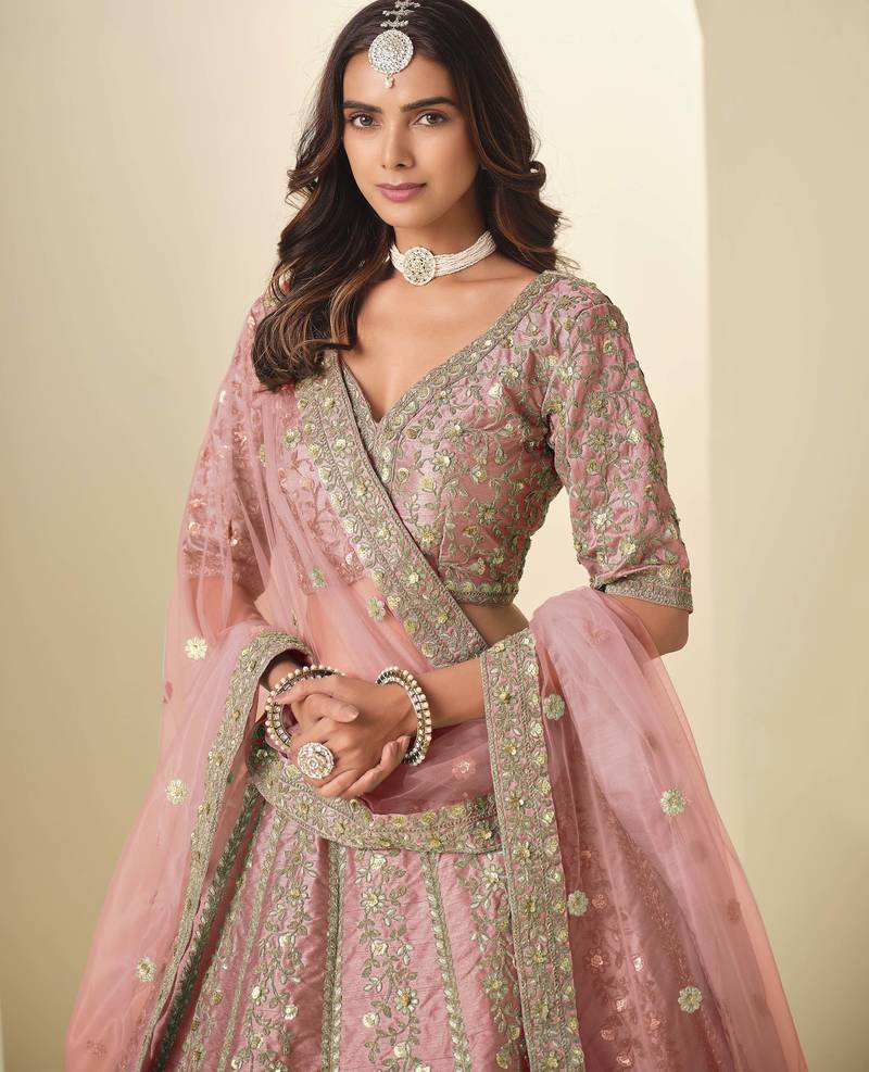 Pink art silk heavy thread embroidery sequins work lehenga choli