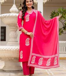 | Product Description | Top Fabric: Rayon, Top Color: Pink, Bottom Fabric: Rayon, Bottom Color: Pink, Dupatta Fabric: Chanderi Cotton, Dupatta Color: Pink, Work: Printed, Remark: Kurta Pant Set (Size S,M,L,Xl,Xxl), Note: There Might Be Slight Color Variation Due To Lightings & Flash While Photo Shoot. |