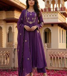 Purple chanderi silk heavy thread embroidery work kurta pant set