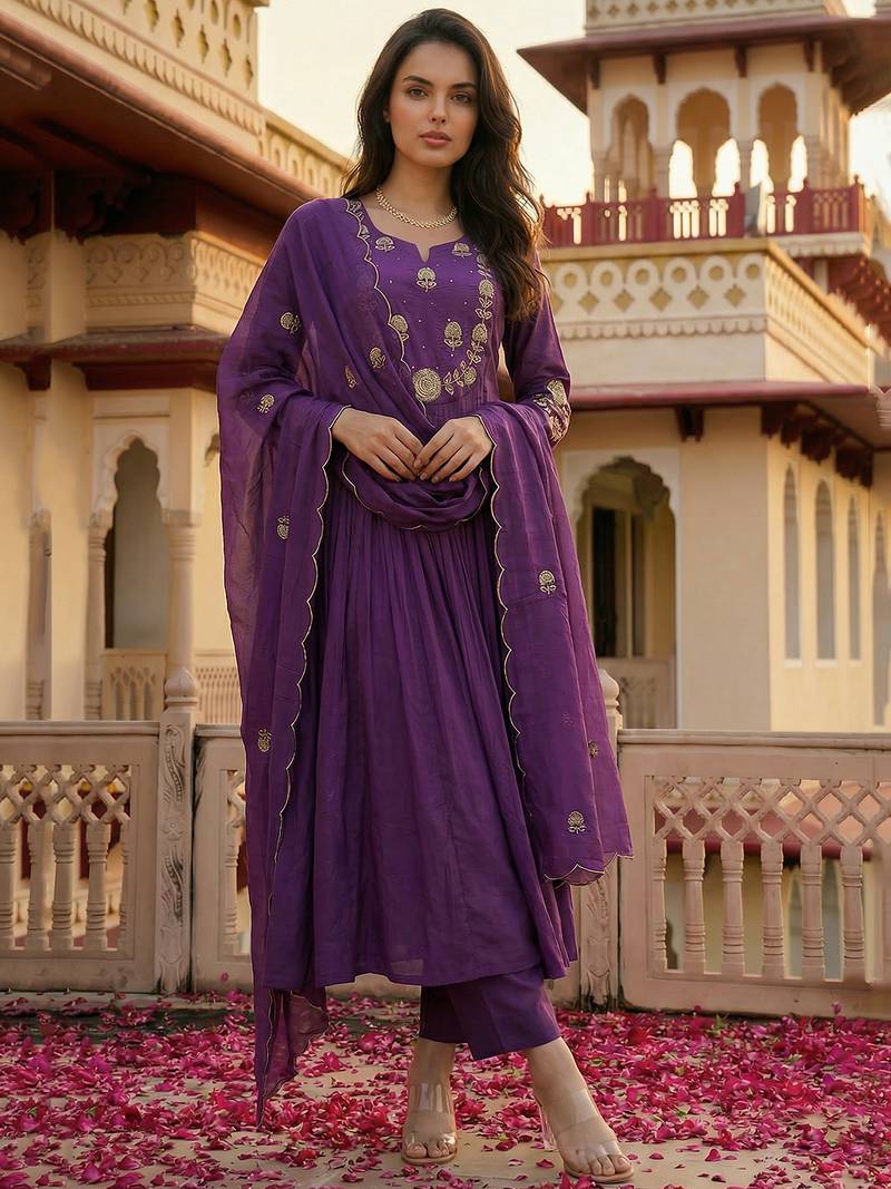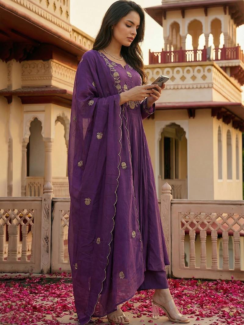 | Product Name | Purple Chanderi Silk Heavy Thread Embroidery Work Kurta Pant Set | |