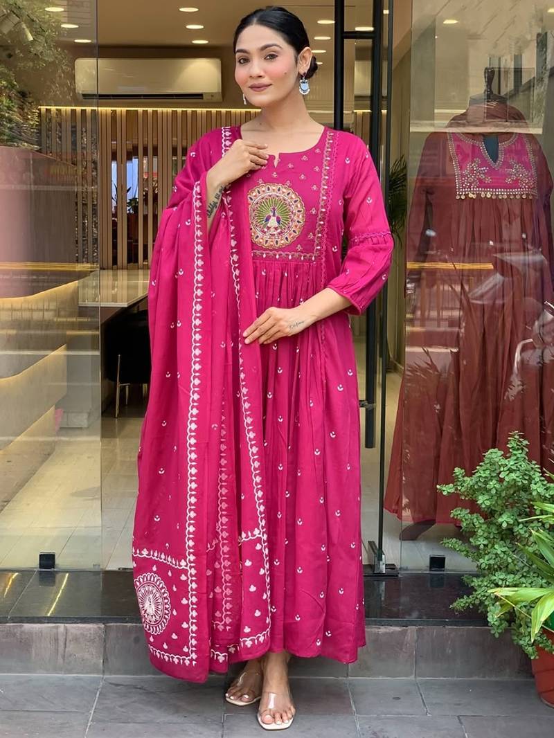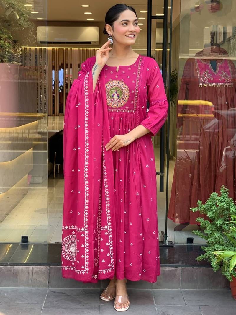 | Product Description | Top Fabric: Cotton, Top Color: Rani Pink, Bottom Fabric: Cotton, Bottom Color: Rani Pink, Dupatta Fabric: Cotton, Dupatta Color: Rani Pink, Work: Heavy Thread Embroidery Work With Khadi Printed, Remark: Kurta Pant Set (Size S,M,L,Xl,Xxl), Note: There Might Be Slight Color Variation Due To Lightings & Flash While Photo Shoot. |
