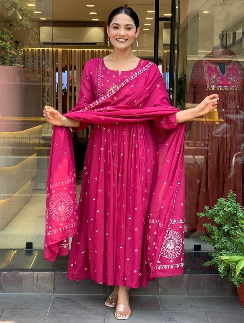| Product Name | Rani Pink Cotton Heavy Thread Embroidery Work With Khadi Printed Kurta Pant Set | |