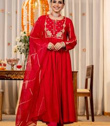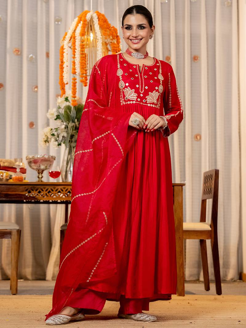 | Product Name | Red Chanderi Silk Heavy Thread Embroidery Work Kurta Pant Set | |