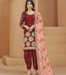 Red embroidered art silk salwar semi stitched