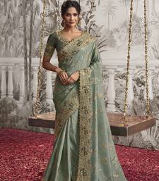 Sea green silk heavy thread embroidred with sequince work saree with blouse