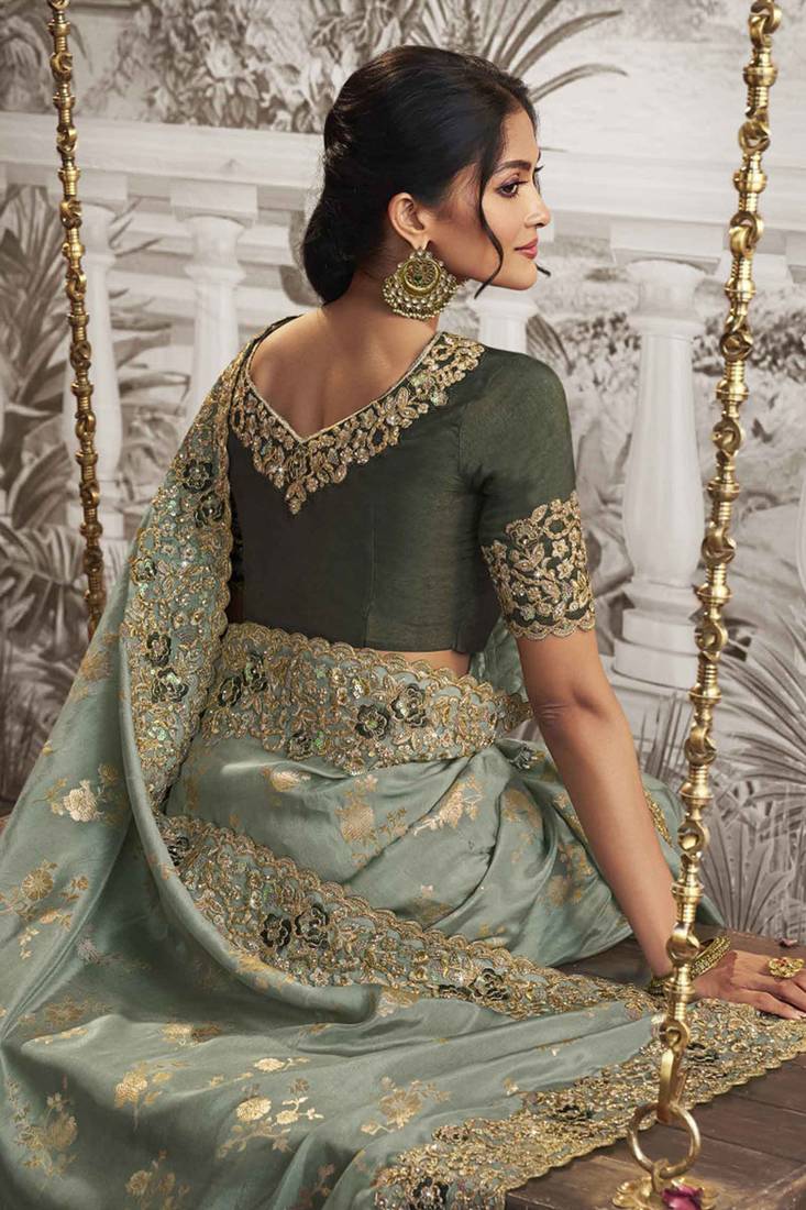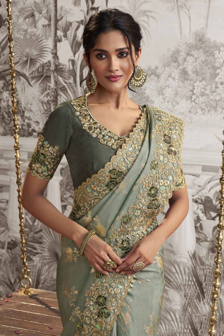 | Product Name | Sea Green Silk Heavy Thread Embroidred With Sequince Work Saree With Blouse | |
