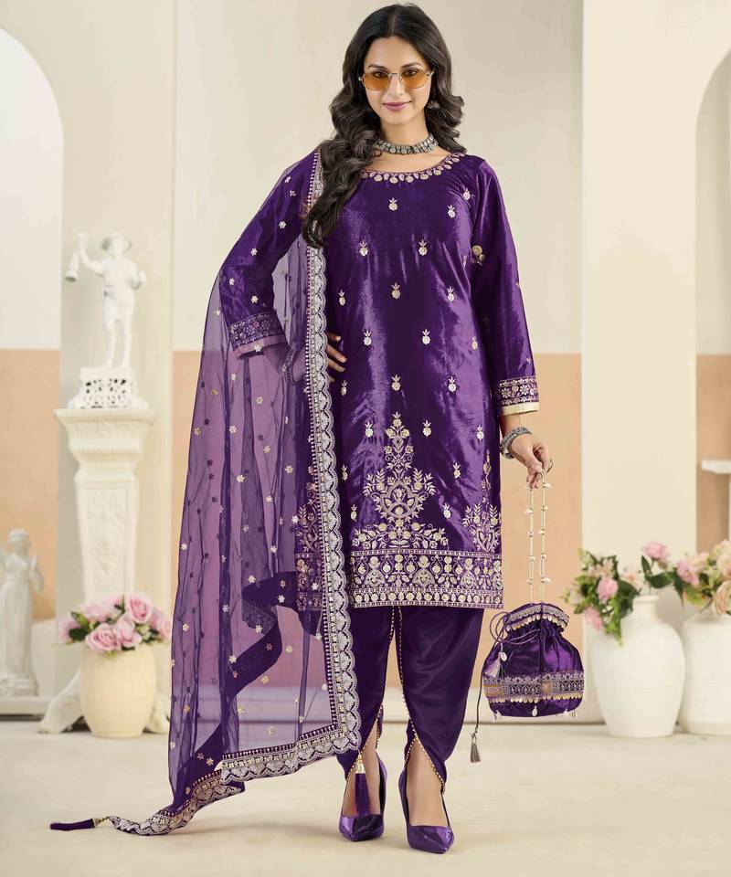 | Product Name | Violet Ice Velvet Heavy Thread Embroidery With Sequins Work Salwar Kameez | |