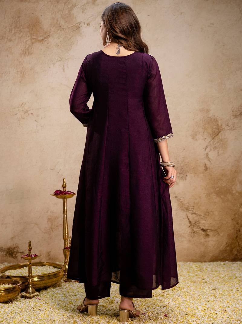 | Product Name | Wine Vichitra Silk Heavy Thread Embroidery Work Kurta Pant Set | |