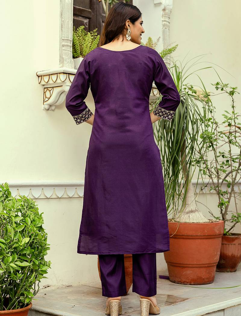 | Product Name | Wine Viscose Chanderi Heavy Thread Embroidery Work With Printed Dupatta Kurta Pant Set | |
