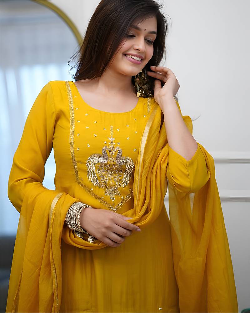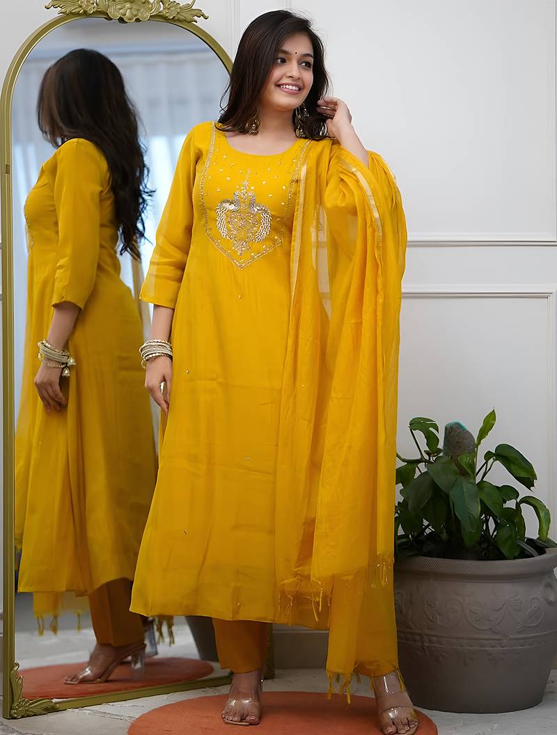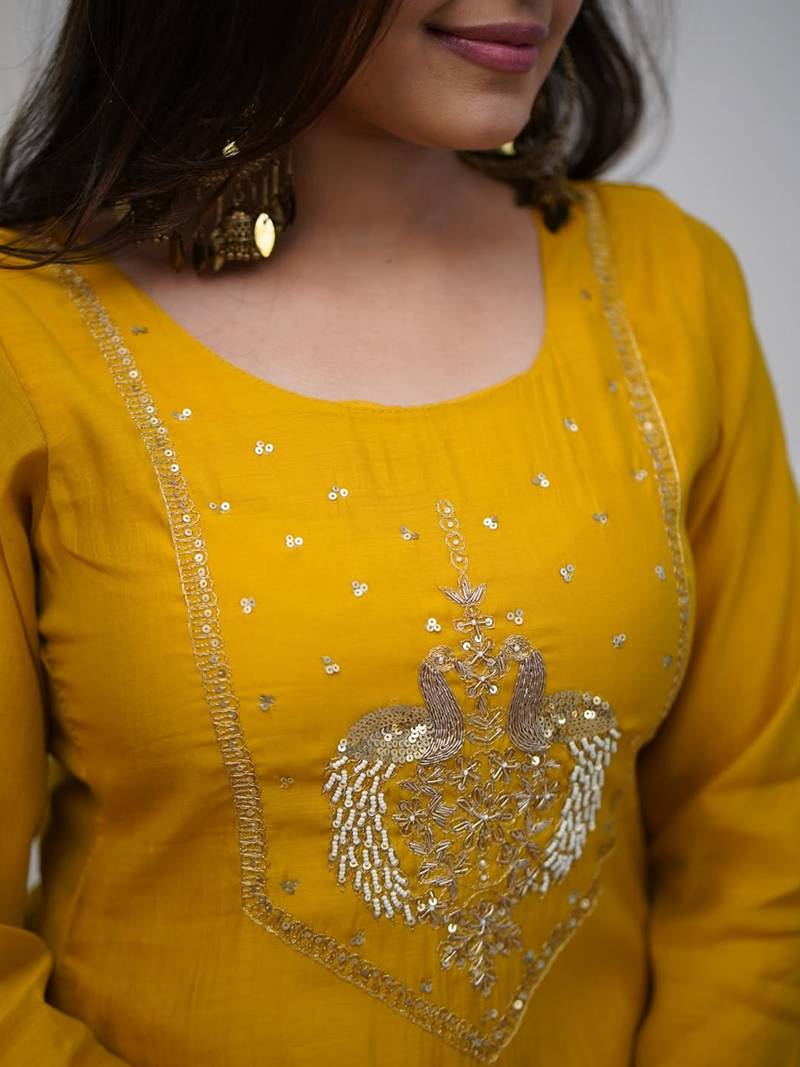 | Product Name | Yellow Chanderi Heavy Thread Embroidery Work Kurta Pant Set | |