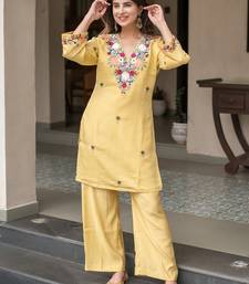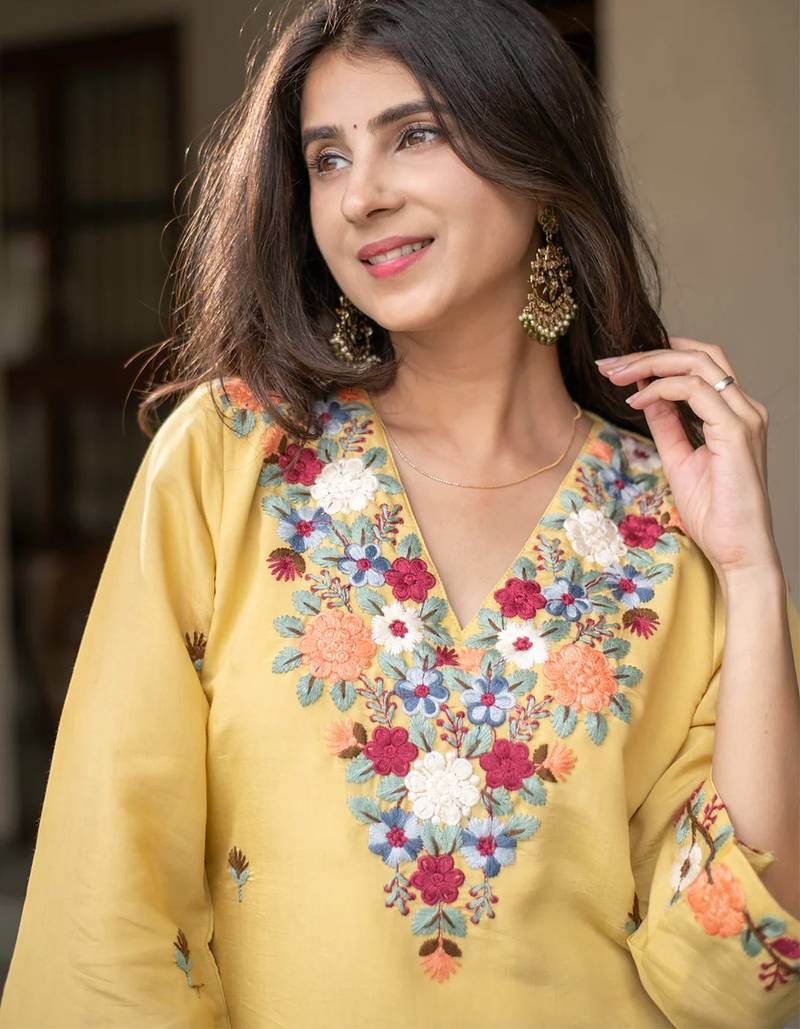 | Product Name | Yellow French Crepe Heavy Thread Embroidery Work Kurta With Pant | |
