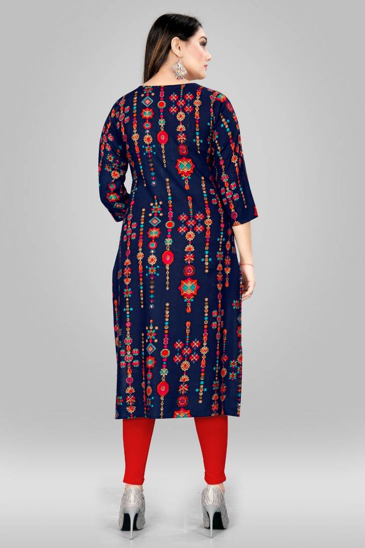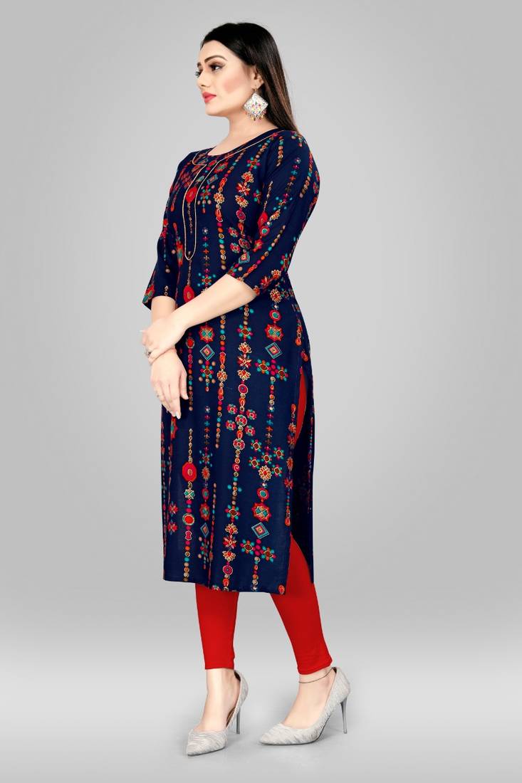 Livuniq's 14kg blue color rayon printed kurti: elevate your style with comfort and luxury