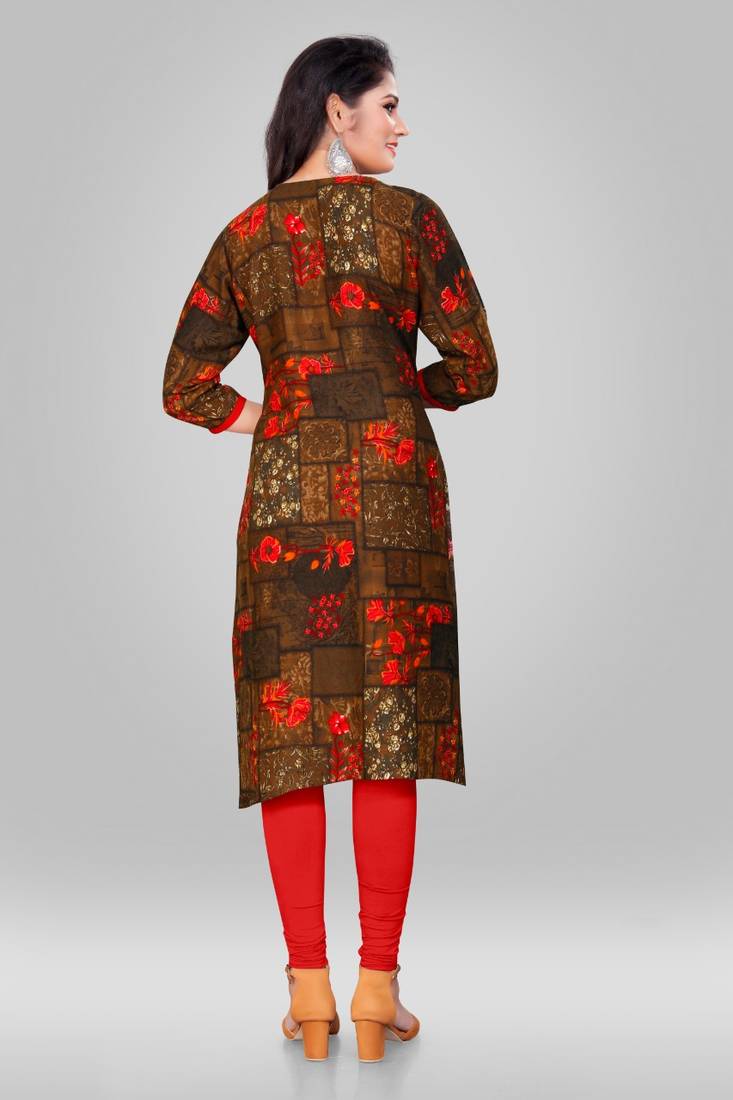 | Product Name | Livuniq's Brown Orange Color Rayon Printed Kurti | |