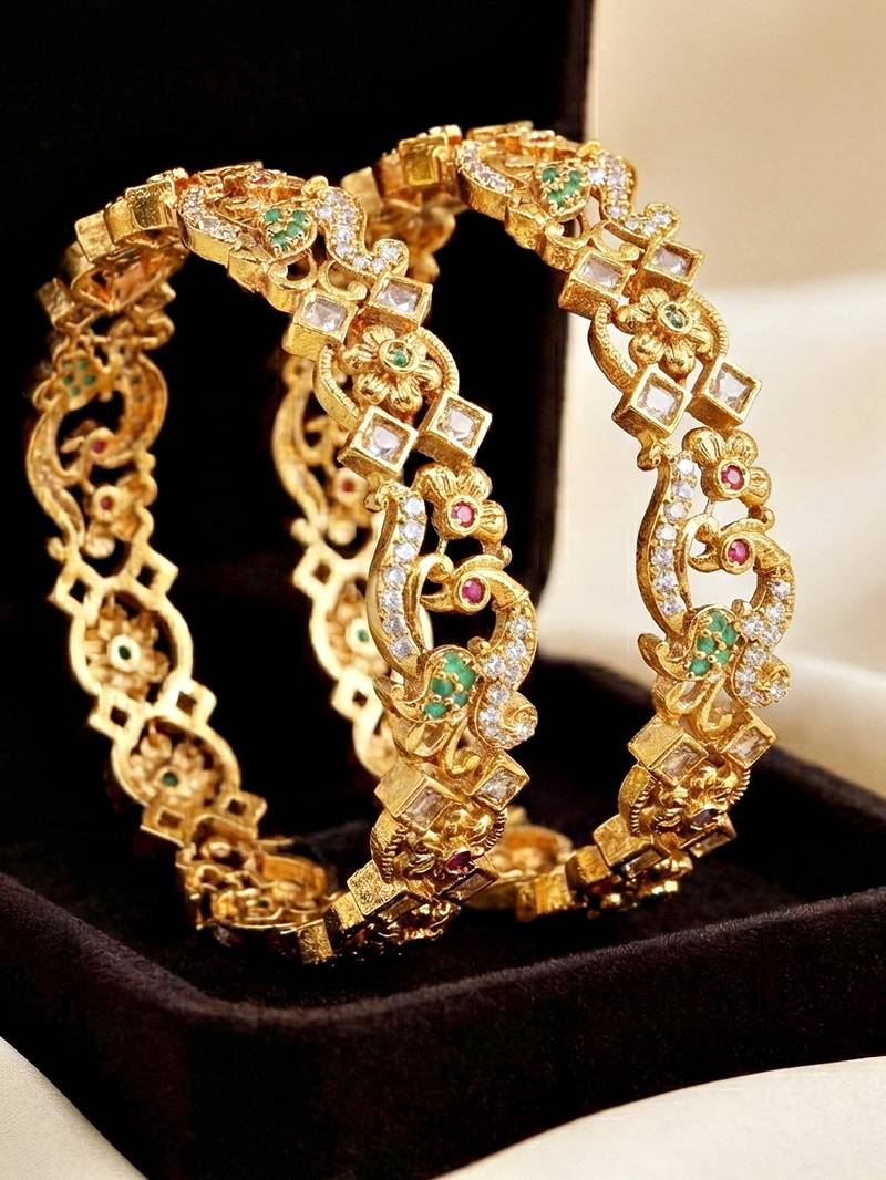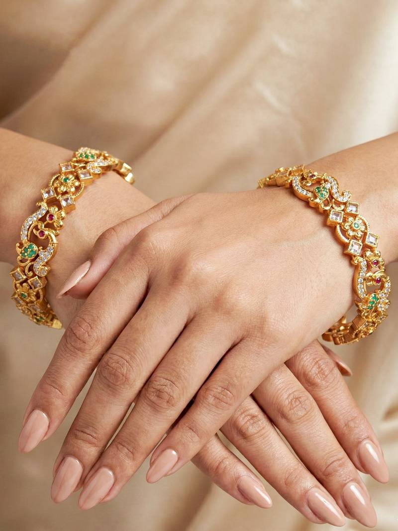 | Product Name | Gold Laxmi Ji Temple Bangle Pink Green Stone Kada | |