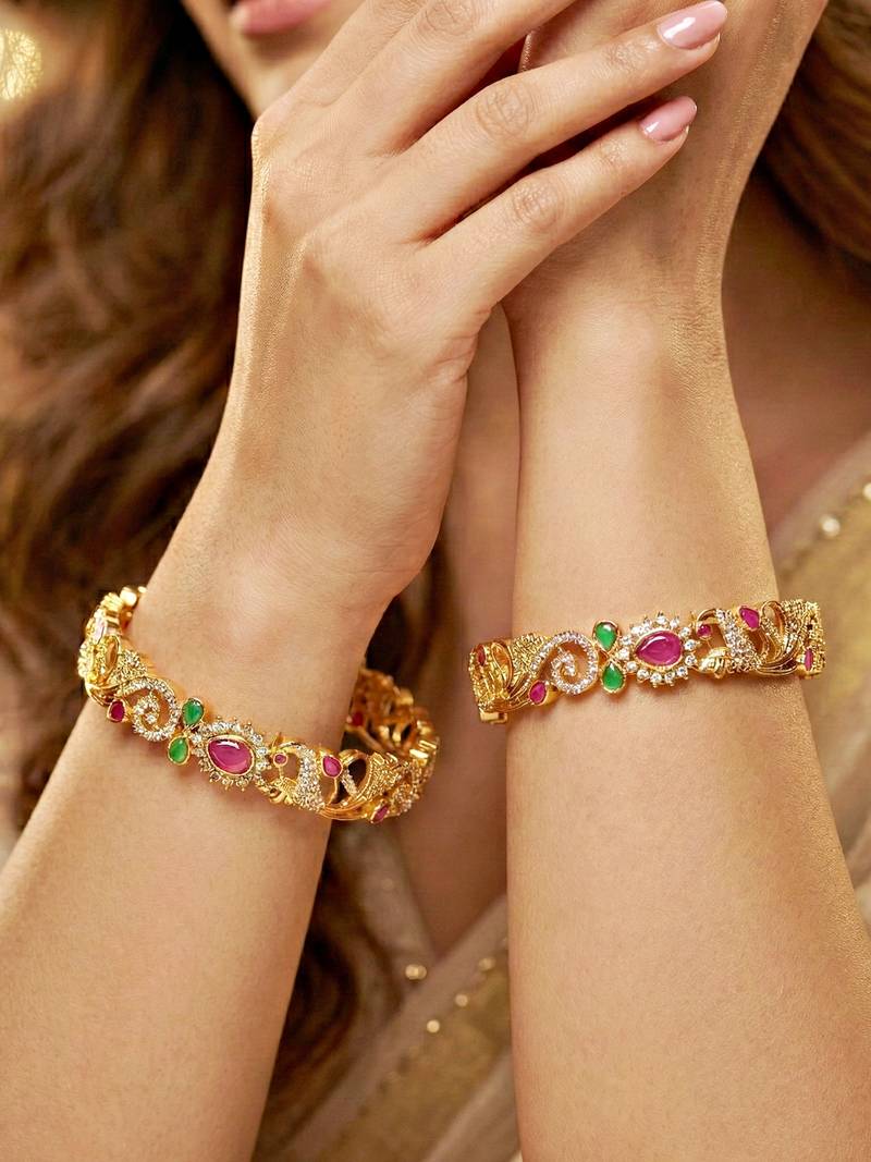 | Product Name | Gold Laxmi Temple Floral Ad Bangle Pink Green | |
