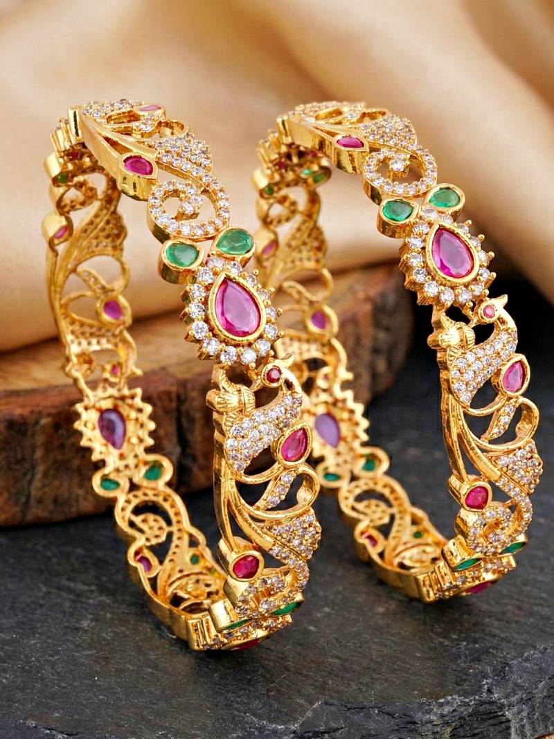 | Product Description | Lucky Jewellery Gold Plated Laxmi Temple Floral Ad Pink Green Bangle (866 C1 Bg 2207 2) |
