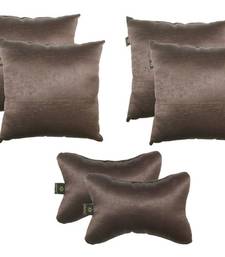 Lushomes textured blackout dark brown car set (4 pcs cushions 12 x 12 inches & 2 pcs neck rest pillow 6 x 10 inches)