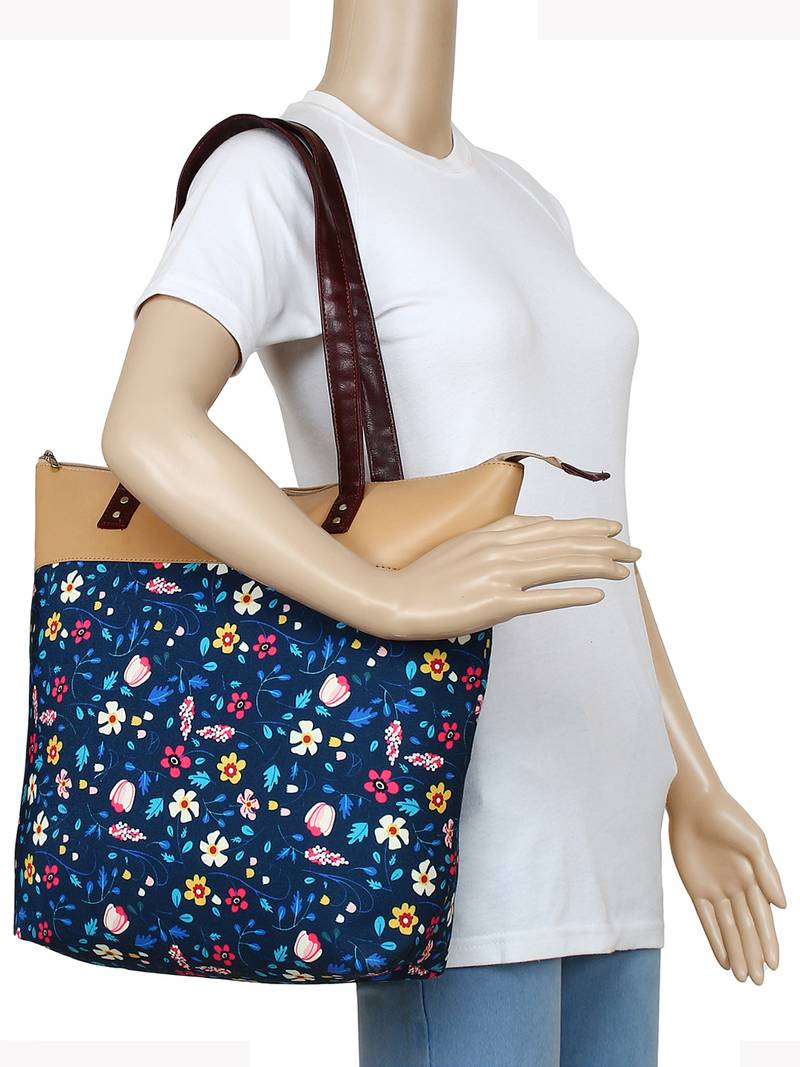 | Product Name | Lychee Bags Canvas Blue Floral Printed Shopper Tote Bag | |