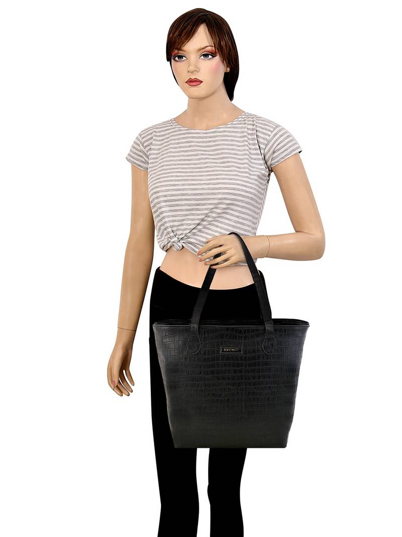 | Product Description | With A Classy Design, This Croco Finish Tote Bag From Lychee Bags Is A Quintessential Wardrobe Accessory And Can Be Teamed With A Maxi Dress And Pumps For A Chic Appeal.A Stylish Pick For The Accessory Collection Of Every Fashion Forward Woman Is This Black Handbag By Lychee Bags .Whenever You Go Shopping Or For A Movie, You May Find It Difficult To Manage Your Cards And Cash. So Get This Handbag For Your Essentials In A Hassle Free Way. You Can Also Carry It To Work Every Day And Let Everyone Notice You For Your Suave Choice. |