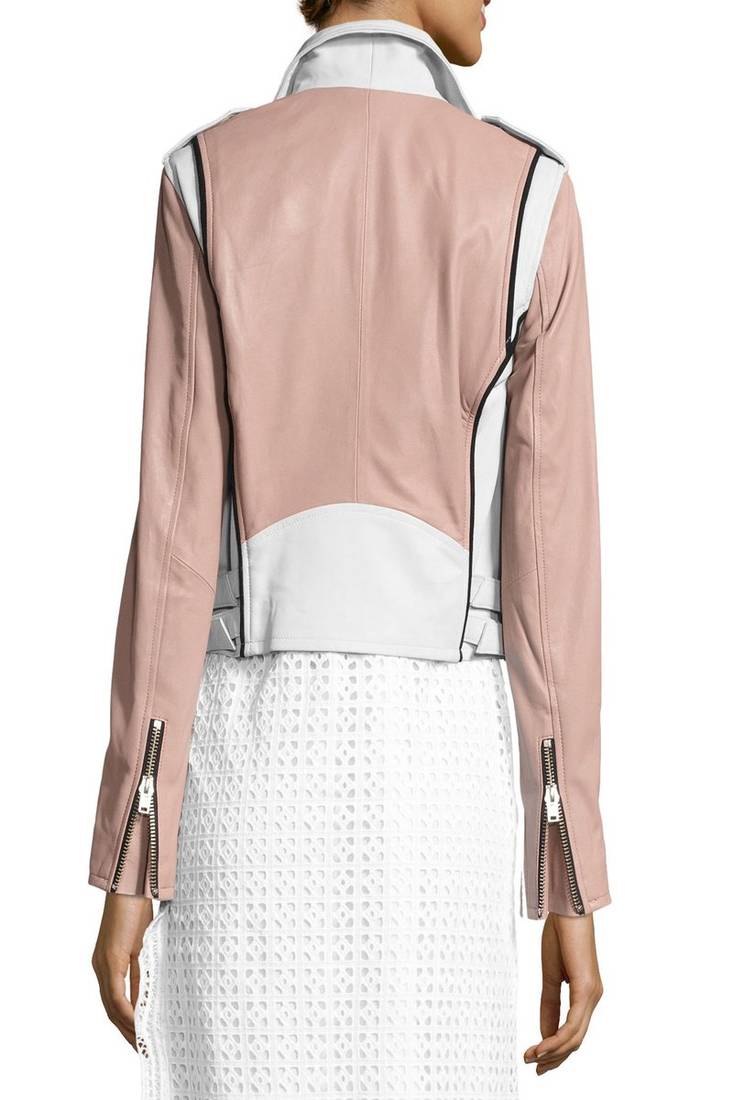 | Product Name | Women’s Pink & White Real Leather Biker Jacket Asymmetrical Zip, Stylish Slim Fit | |
