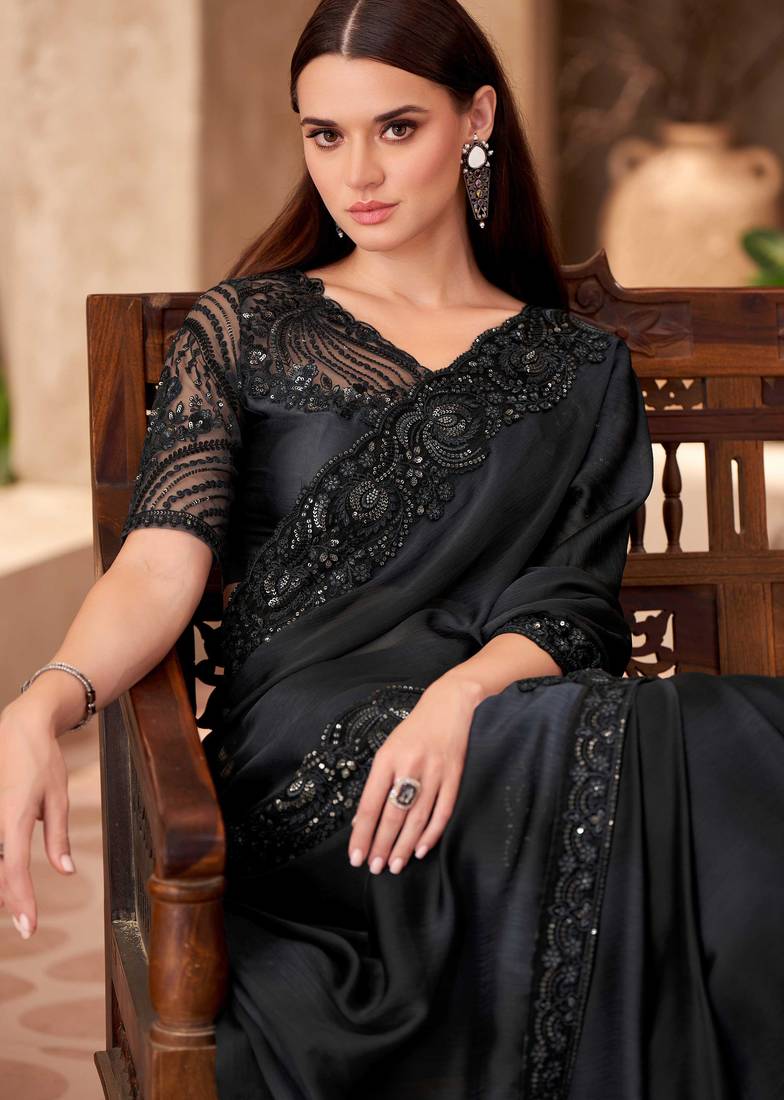 | Product Name | Black Chiffon Embroidered Saree | |