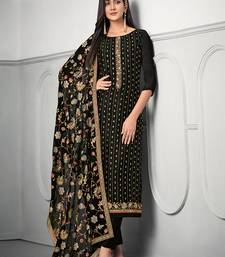 Black chinon straight pant suit with embroidery and sequins work, free-size stitched.
