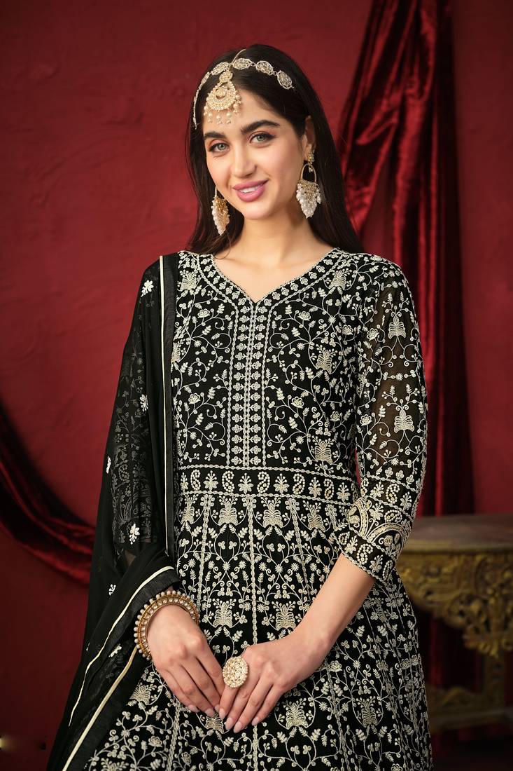 | Product Description | • Black Georgette Anarkali Chudidar.