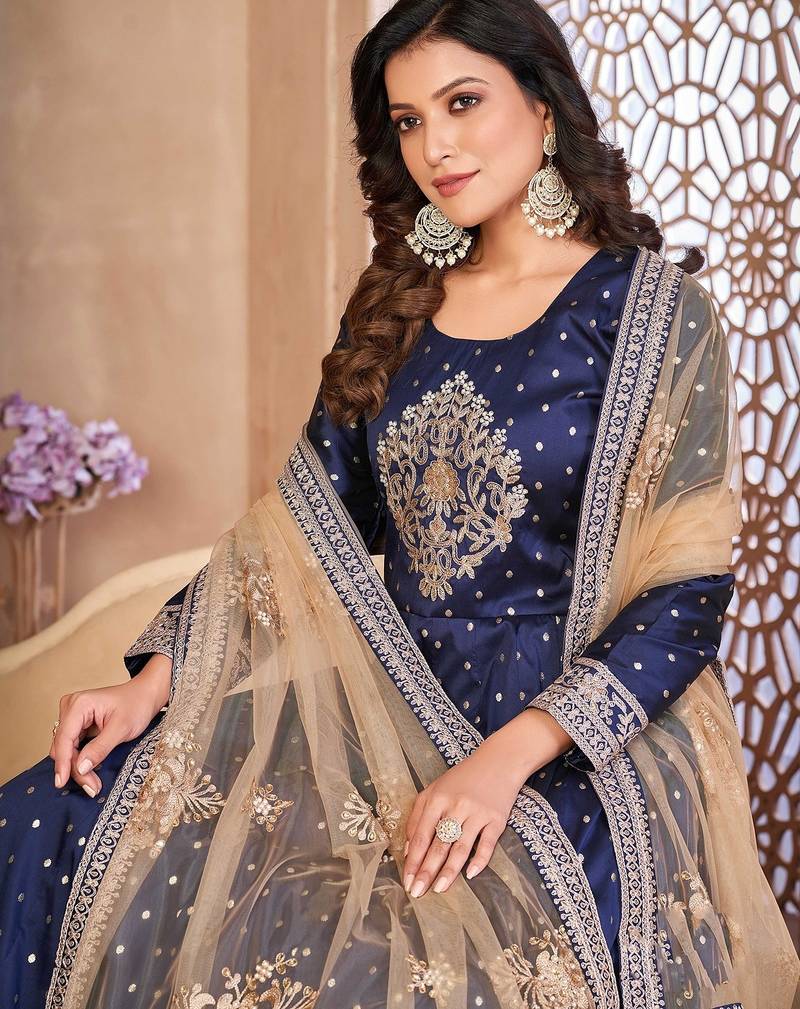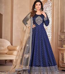 Blue art silk sequins work semi stitched size up to 42 salwar suits