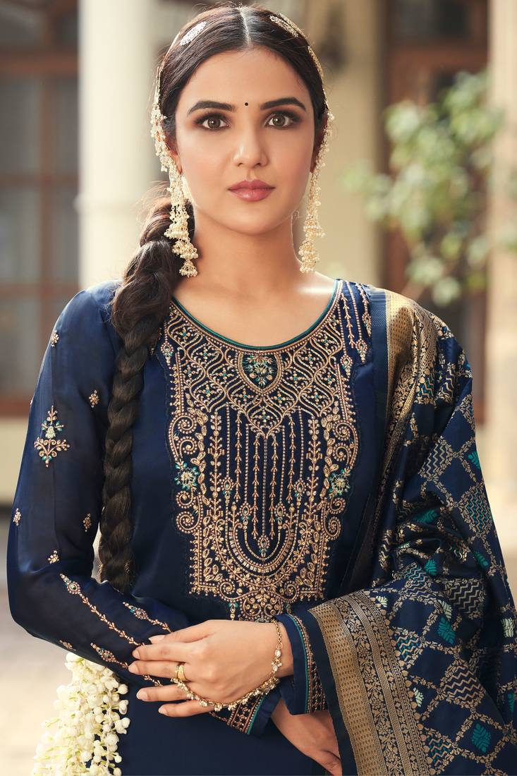 | Product Name | Blue Embroidered Georgette Salwar Up To 42" Size | |