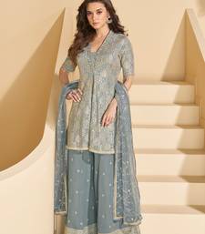 | Product Description | • Blue Gerogette Anarkali Palazzo Suit.