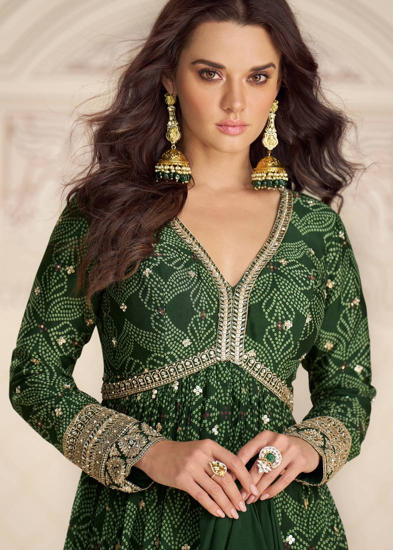 Dark green art silk sequins readymade suits free size up to 42 stitched