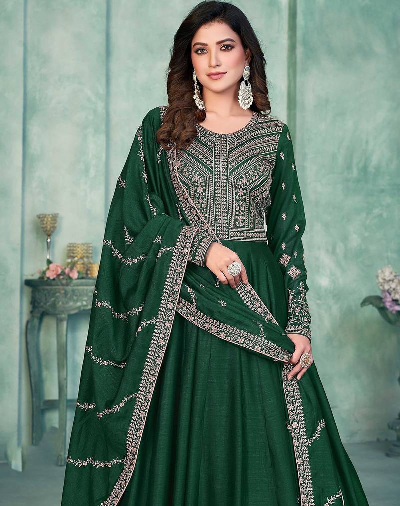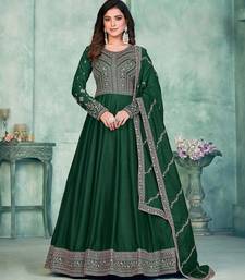 Green art silk hand embroidery semi stitched size up to 42 salwar suits