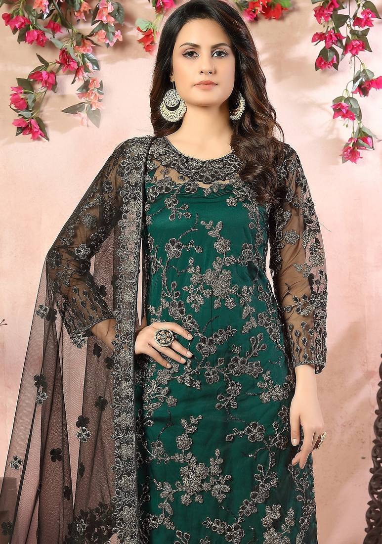 | Product Name | Green Net Zari Work Semi Stitched Size Up To 42 Salwar Suits | |