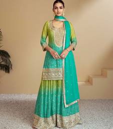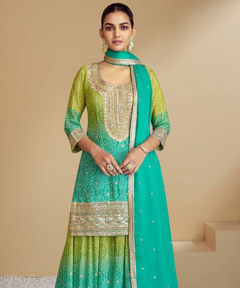 Lime silk blend hand embroidery semi stitched salwar suits suits size up to 42