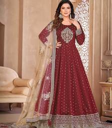 Maroon art silk sequins work semi stitched size up to 42 salwar suits