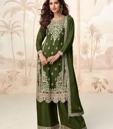 Product Description | • Mehndi Green Chinnon Silk Straight Palazzo Suit.