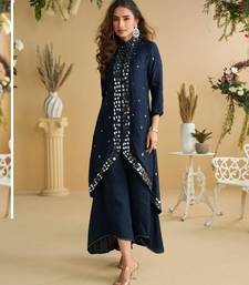 Navy blue golden embroidery and gota work real silk straight top pant- - full stitched free size