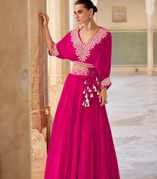Pink chiffon embroidered lehenga set